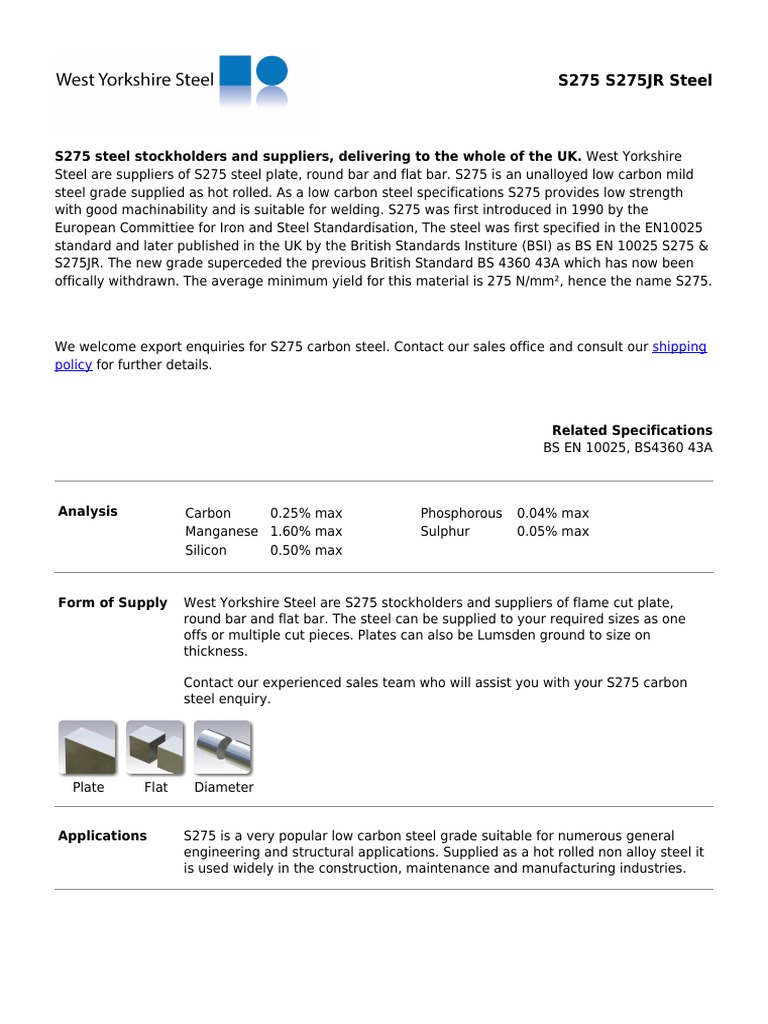 S275 data sheet specification.